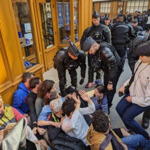 Les activistes étaient sur place dès à 6h du matin pour s’enchaîner les un·es aux autres devant les portes d’entrée de la salle Pleyel, mais les forces de l’ordre les ont accueilli·es à coups de gaz lacrymogène, nasses, grenades et matraquages arbitraires. La présence policière disproportionnée qui a été déployée ce matin et la violente répression qui a été observée ont empêché le blocage d’être effectif, et montrent une fois de plus que l’État protège les intérêts de la multinationale et des puissants, au détriment de l’intérêt général et de la transition. Malgré les violences, les tentatives d’intimidation et les brutalisations par les forces de l’ordre, les activistes sont resté·es déterminé·es et ont montré que le cynisme de Total n’a plus sa place à l’heure où la planète subit des sécheresses sans précédent. Tenir de la sorte l’AG de l’une des entreprises les plus polluantes de la planète, au prix d’une violence inouïe et d’activistes blessé·es alors que l’action est non-violente, est l’aveu du fiasco de la stratégie destructrice de Total. Nous dénonçons la protection du mastodon pétro-gazier par le gouvernement, et exigeons du gouvernement d’Emmanuel Macron qu’il mette enfin en place un encadrement strict des activités du groupe, pour préserver l’environnement et les droits des communautés affectées.